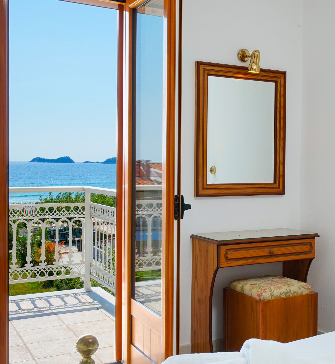 - Private balcony with sea view or garden-mountain view and dining set consisted of table and chairs